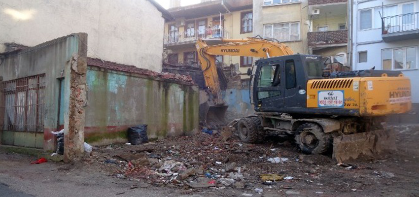 Osmangazi Belediyesi, Kayhan Mahallesi’nde madde bağımlılarının mesken tuttuğu metruk binayı yıktı.
