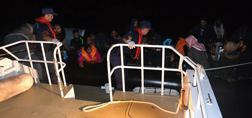 Kuşadası’nda sahil güvenlik ekiplerinin gerçekleştirdiği iki ayrı operasyonda yasa dışı yollardan yurt dışına kaçmaya çalışan 38’i çocuk, 23’ü kadın toplam 79 göçmen yakalandı.