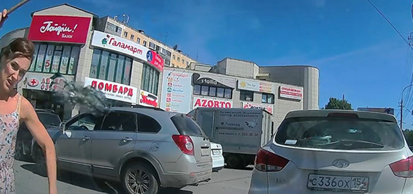 Rusya’nın Novosibirsk şehrinde bir kadın aracıyla yolda ilerlerken hatalı park eden 2 araç yüzünden geçemedi. Bir süre burada araç sürücülerini bekleyen kadın sürücü ardından çareyi geriye çıkarak başka yoldan ilerlemekte buldu. Geri geri sokaktan çıkan kadın ardından başka bir yola döndü. Bu kez ise önündeki başka bir araç yüzünden ilerleyemedi. Bir süre bekleyen sürücü yol açılmayınca bu kez kornaya bastı.