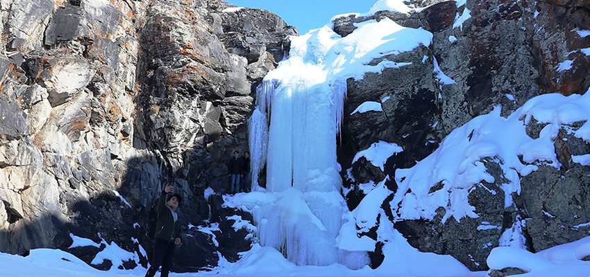 Bu “saklı cennet”in, daha fazla tanıtılması gerektiğini ifade eden Sarıkaya, “Bölgede zorlu geçen kış mevsimi, beraberinde doğal güzellikleri de getirdi. Şelale her sene buz tutuyor. Biz de arkadaşlarla buraya gezmeye gelip fotoğraflar çekiyoruz. Bazen kayalıkları tırmanıp buzların arka tarafındaki boşluğa geçiyoruz. Kışın dağcılar gelip burada tırmanış yapıyorlar. Yazın da ailece buraya pikniğe geliyoruz.” diye konuştu.