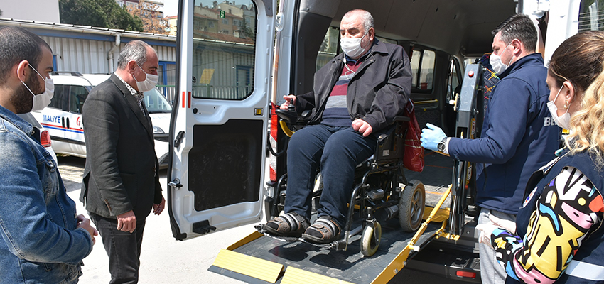 Konuşmaların ardından engelli vatandaş Fariz Eşiyok, özel hazırlanan rampadan engelli aracına binerek gideceği adrese Başkan Sertaslan tarafından götürüldü.