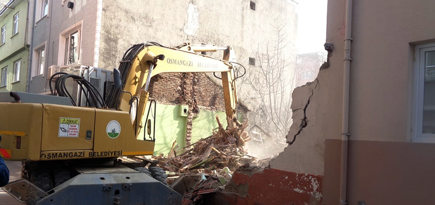 Osmangazi Belediyesi, Çirişhane Mahallesi’nde güvenlik açısından tehlike oluşturan metruk binayı yıktı.