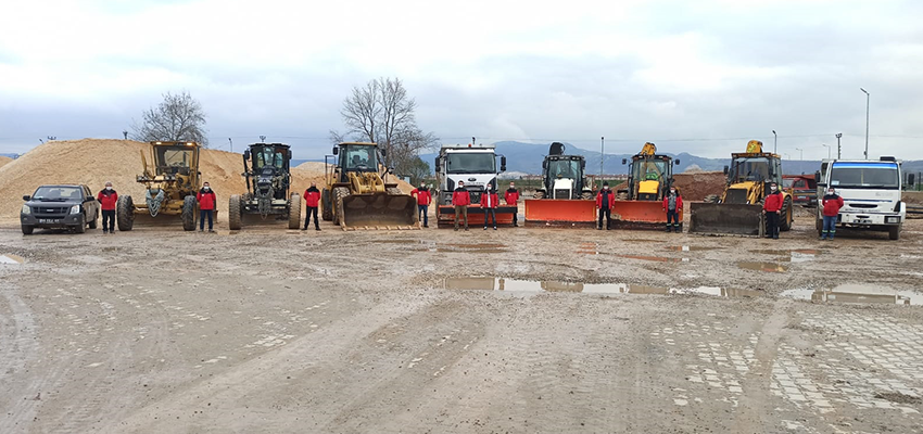 Yüksek kesimlerde kar yağışının başladığı Mustafakemalpaşa’da ulaşımın aksamaması için çalışmalarını sürdüren ekipler, hem merkezde hem de kırsalda 24 saat boyunca nöbette olacak.