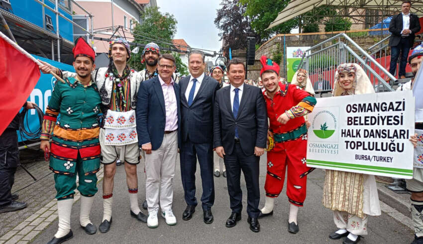 Bursa’nın kardeş şehri olan Hessen eyaletinde düzenlenen ‘Hessentag 2024 Festivali’ne katılmak için Almanya’da bulunan Osmangazi Belediye Başkanı Erkan Aydın, 2012 yılından bu yana Osmangazi Belediyesi’nin kardeş şehri olan Almanya’nın Hessen eyaletine bağlı Lahn-Dill-Kreis Bölge Başkanı Stephan Aurand’u ziyaret etti. Lahn-Dill-Kreis Meclis Komisyon Başkanı Murat Polat’ın da yer aldığı ziyarette Başkan Aydın, resmi karşılama töreni ile ağırlandı. Oldukça sıcak ve samimi bir ortamda gerçekleşen ziyarette, iki başkan, mevcut projeleri ve planları hakkında bilgilendirme yaptı. Stephan Aurand, bölgenin ekonomik, sosyal ve kültürel durumu hakkında kapsamlı bir sunum gerçekleştirdi.