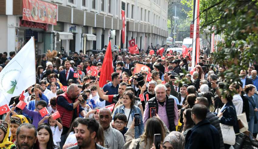 Büyük Önder Mustafa Kemal Atatürk’ün çocuklara armağan ettiği 23 Nisan Ulusal Egemenlik ve Çocuk Bayramı Osmangazi ilçesinde düzenlenen muhteşem bir kortej yürüyüşüyle kutlandı. Zafer Plaza Meydanı’nda vatandaşların yoğun katılımıyla tören düzenlendi. Burada düzenlenen törende Osmangazi Belediyesi Halk Dansları Ekibi bir gösteri yaptı. Törenin ardından Osmangazi Belediye Başkanı Erkan Aydın, CHP Bursa İl Başkanı Nihat Yeşiltaş, CHP Osmangazi İlçe Başkanı Raşit Gürbüz, CHP Parti Meclis Üyesi Canan Taşer, çocuklar ve vatandaşların yoğun katımıyla kortej yürüyüşü gerçekleşti. Renkli görüntülere sahne olan etkinlikte öğrenciler bayram sevincini hep birlikte yaşarken, vatandaşlar da korteje alkışlarla eşlik etti. Zafer Plaza Meydanı’nda başlayan yürüyüşe katılanlar ellerinde bulunan Türk bayrakları ve Atatürk posterini sallayıp marşlar söyleyerek büyük coşku yaşadı.
