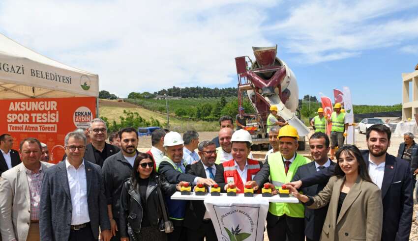 Konuşmaların ardından Başkan Aydın ve protokol üyeleri tarafından Aksungur Spor Tesisi inşaatının temeline ilk harç döküldü.