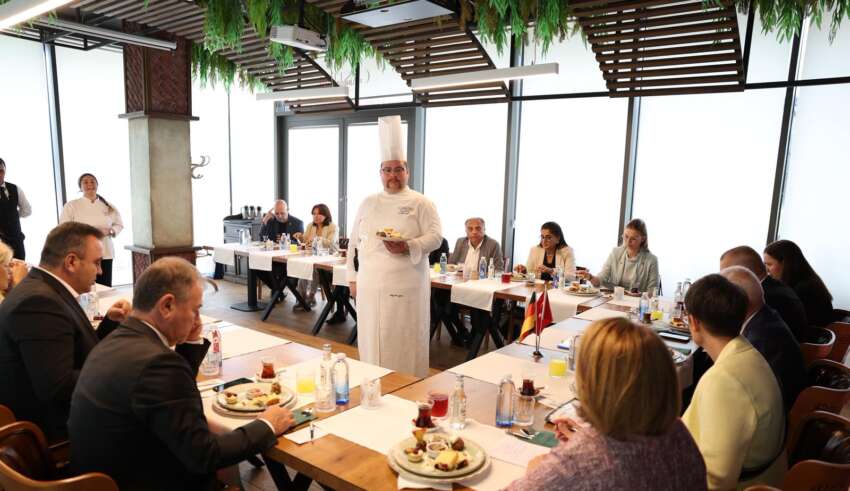 Konuşmaların ardından Bursa’nın ünlü şeflerinden Ali Müfit Çağlayan tarafından hazırlanan Bursa’ya özgü tatlar, misafirlere ikram edildi. Kullanılan ürünler ve hikayeleri hakkında konuklara bilgiler verildi. Sunulan yemekleri büyük beğeniyle yiyen yabancı konuklar, Başkan Mustafa Bozbey’e ve Şef Ali Müfit Çağlayan’a teşekkür etti. Başkan Bozbey, Alman heyeti 26-27-28 Eylül tarihlerinde yapılacak Bursa Gastronomi Festivali’ne davet etti.