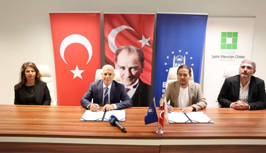 Bursa Büyükşehir Belediyesi ile TMMOB Şehir Plancıları Odası, 6-8 Kasım’da düzenlenecek ‘8 Kasım Dünya Şehircilik Günü 49. Kolokyumu’ için iş birliği protokolü imzaladı. Başkan Mustafa Bozbey, kolokyumun 1/100.000’lik Çevre Düzeni Planı sürecine önemli katkı sağlayacağını söyledi.