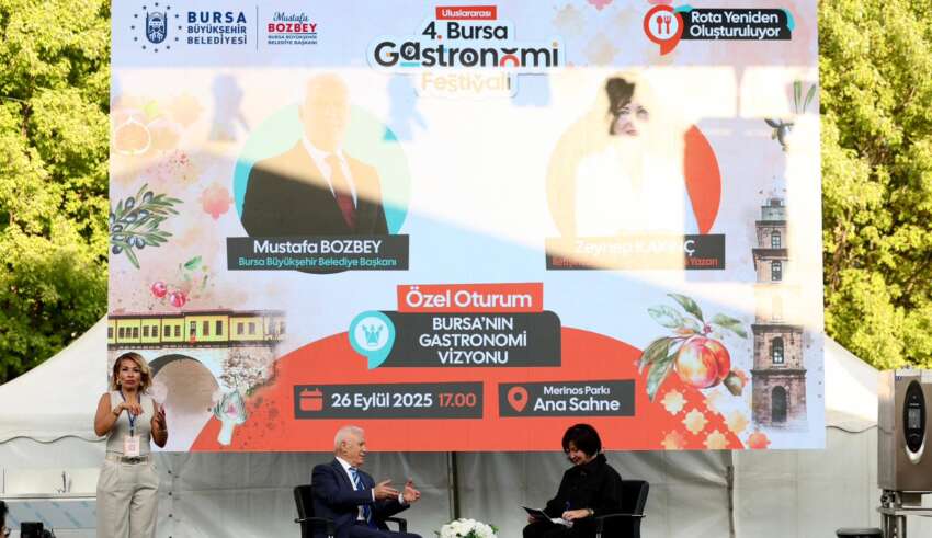 Bu yıl ‘Rota Yeniden Oluşturuluyor’ temasıyla düzenlenen 4. Bursa Uluslararası Gastronomi Festivali, Merinos Parkı’nda şehir içinden ve şehir dışından gelen binlerce misafiri ağırlıyor. Birçok renkli etkinliğe, atölyelere ve yarışmalara sahne olan festival, ziyaretçilere birbirinden farklı lezzetleri tatma imkanı sunuyor. Moderatörlüğünü Gastronomi Yazarı Zeynep Kakınç’ın üstlendiği özel oturumun konuğu ise, Marmara Belediyeler Birliği ve Bursa Büyükşehir Belediye Başkanı Mustafa Bozbey oldu.