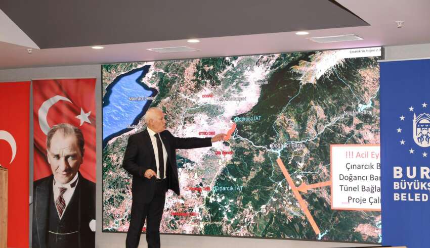 Bursa Büyükşehir Belediye Başkanı Mustafa Bozbey, su seviyesinin Doğancı’da yüzde 6,81, Çınarcık’ta yüzde 50 Nilüfer’de ise hiç kalmadığına dikkat çekerek, “Çınarcık bypass hattı şu anda kurtarıcı pozisyonunda. Her ihtimali göz önünde bulundurarak çözüm bulmak zorundayız. Çınarcık Barajı’ndaki suyun tamamını içme suyu olarak değerlendirmek istediğimizi DSİ”ye ilettik. Hiç yağmur yağmadığı ve planlı su kesintisi yapılmadığı takdirde bu koşullarda 6 Ekim tarihinde barajlardaki su tükenmiş olacak” dedi.