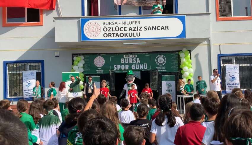 Spor Günü etkinliklerinin ilki Nilüfer Özlüce Aziz Sancar Ortaokulunda gerçekleştirildi. Etkinliğe Bursa İl Millî Eğitim Müdür Yardımcısı Abdulkadir Çınar, Bursaspor Kulübü Başkanı Enes Çelik, Teknik Direktör Tahsin Tam ve Bursasporlu futbolcular katıldı.