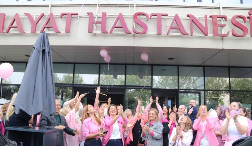 Pembe kıyafetleriyle farkındalık ayına anlamlı bir destek veren BUİKAD üyeleri daha sonra Hayat Hastanesi önünde meme kanserine farkındalık oluşturmak adına pembe balonlar uçurdu.
