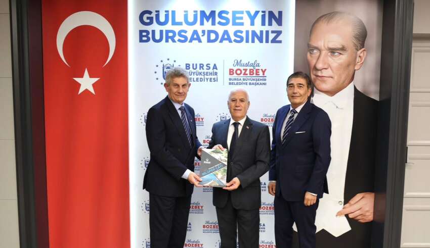 Bursa Sanayicileri ve İş İnsanları Derneği (BUSİAD) Yönetim Kurulu Başkanı Buğra Küçükkayalar ve Yönetim Kurulu Üyesi Hüsamettin Çoban, Bursa Büyükşehir Belediye Başkanı Mustafa Bozbey’i makamında ziyaret ederek, “Herkesin Bildiği Sır-Nilüfer Çayı” raporunu ilettiler.