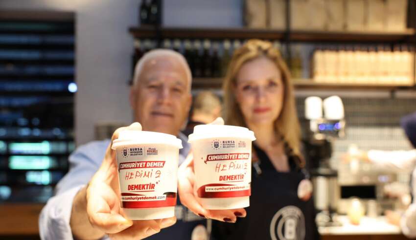Eşi Seden Bozbey ile birlikte barista önlüklerini giyen Başkan Bozbey, Cumhuriyetin 102. yılına özel olarak hazırlanan ‘Cumhuriyet Demek’ temalı bardaklarda içecek ikramında bulundu. Vatandaşların isimlerini ‘Cumhuriyet demek’ temalı bardaklara yazan Başkan Mustafa Bozbey ve eşi Seden Bozbey, Atatürk’ün emanet ettiği Cumhuriyet’in sıcaklığını Bursalılarla birlikte paylaştı. Bu sene kutlamaların teması olan ‘Cumhuriyet demek, hepimiz demek’ sloganını da yazarak ikramda bulunan Başkan Bozbey ve eşi Seden Bozbey, kahve keyfini vatandaşlarla birlikte yaşadı.