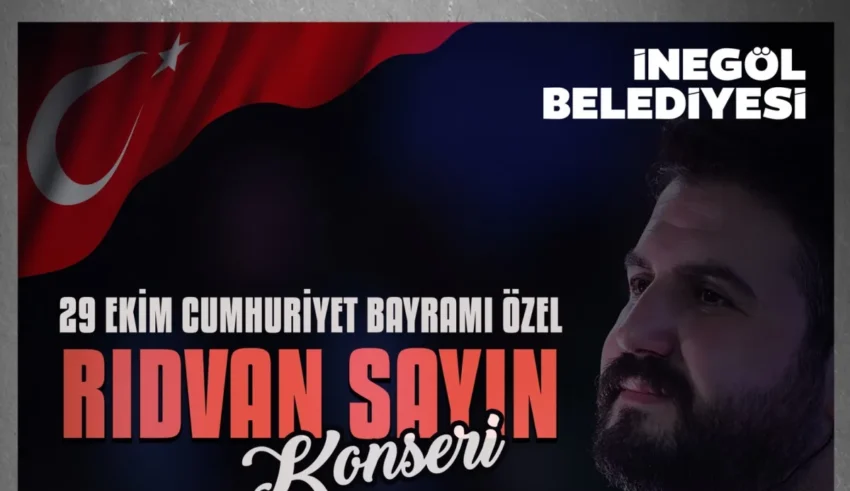 İnegöl Belediyesi, 29 Ekim Cumhuriyet Bayramı kutlamaları kapsamında Rıdvan Sayın’ın sahne alacağı Cumhuriyet Bayramı Özel Konseri düzenliyor.