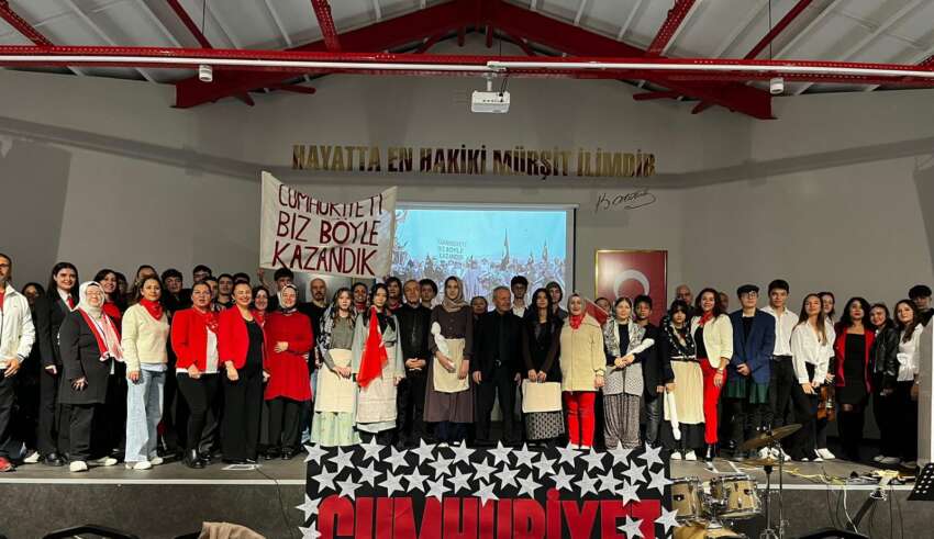 Cumhuriyet Bayramı coşkusunun doyasıya yaşandığı program, öğrencilerin hazırladığı sahne gösterileri ve müzik dinletisiyle sona erdi.