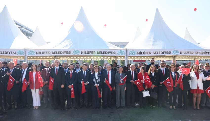 Saygı duruşu ve İstiklal Marşı’nın okunmasının ardından konuşan Nilüfer Belediye Başkanı Şadi Özdemir, “Bugün, bir milletin küllerinden yeniden doğduğu, özgürlüğü, eşitliği ve adaleti temel alan yeni bir yaşamı kurduğu büyük günün yıl dönümündeyiz” dedi.
