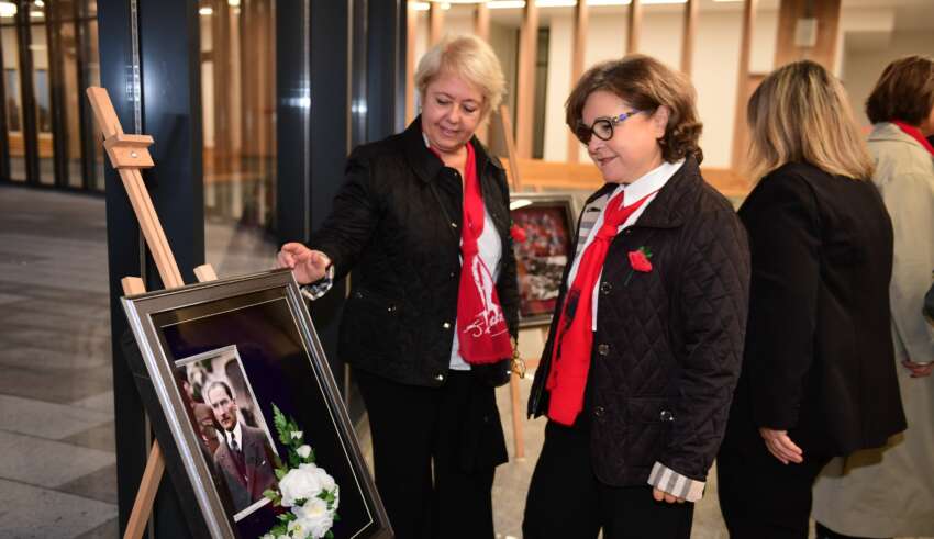 Kurdela kesiminin ardından sergiyi gezen protokol üyeleri, eserleri dikkat ile incelerken Ulu Önder Mustafa Kemal Atatürk’ü saygı ve minnet ile andı. Sergi hakkında bilgiler veren Dilber Demirkıran, 18 eserin bulunduğunu ve satıştan elde edilecek gelirin öğrencilerin bursunda kullanılacağını belirtti. Serginin ardından Bursa Uludağ Üniversitesi Doç. Dr. Hacer Karabağ Arslan, ‘Balkanlar’dan Anadolu’ya: Atatürk’ün Liderlik İnşası’ adlı söyleşi ile katılımcılara bilgilendirmelerde bulundu. Söyleşide Atatürk’ün Balkanlar coğrafyasından Anadolu’ya dek uzanan milli mücadele ruhuna ışık tutan Doç. Dr. Hacer Karabağ Arslan, Cumhuriyetin ilanı ve sonrasına ilişkin anılara perde açarak, Atatürk’ün liderliğine vurgu yaptı.