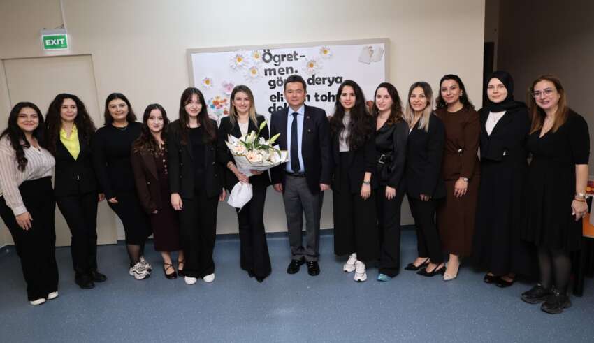 Ziyaretlerin sonunda Başkan Aydın, öğretmenlere 24 Kasım Öğretmenler Günü münasebetiyle çiçek ve çeşitli hediyeler takdim etti.