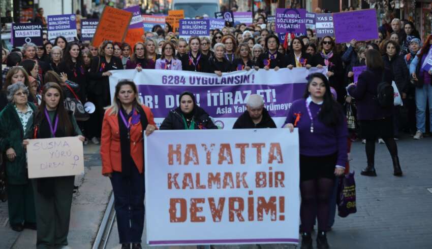 “Kadına yönelik şiddetle mücadele demek; kadınların eşitlik, özgürlük ve güvenlik içinde yaşama hakkını savunmak demektir” şeklinde duygularını dile getiren Bursa Kent Konseyi Kadın Meclisi Başkanı Derya Şimşek Aksakal, ”Biz kadınlar, hayatlarımızı savunmak için yürüyoruz. Şiddetsiz bir yaşam için, adalet için, eşitlik için sokaktayız. Bugün buradan bir kez daha ilan ediyoruz: Bir kişi daha eksilmeyeceğiz. Erkek şiddetine boyun eğmeyeceğiz. Hayatlarımızdan, haklarımızdan, özgürlüğümüzden vazgeçmeyeceğiz” dedi.