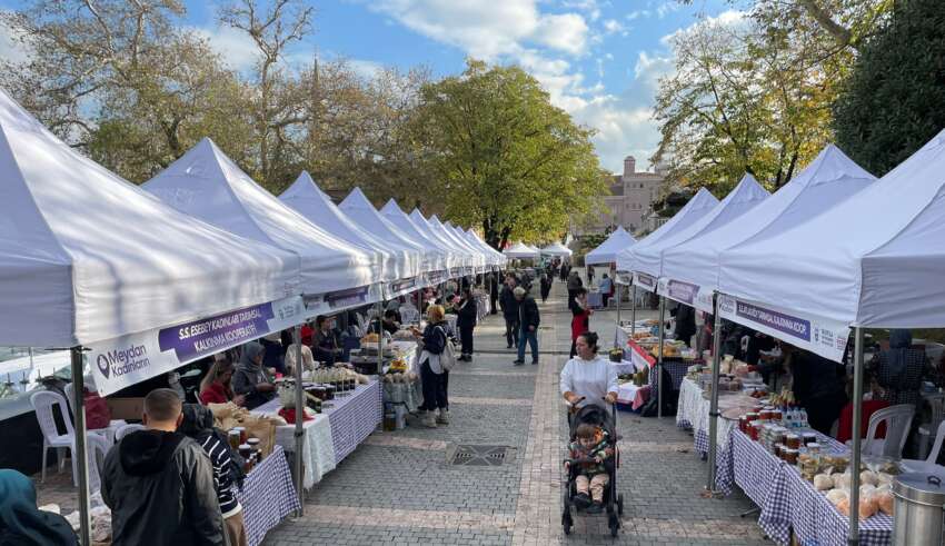 Bursa Büyükşehir Belediyesi’nin ‘Meydan Kadınların’ sloganıyla yürüttüğü dayanışma pazarı bir kez daha Heykel Orhangazi Parkı’nda kuruldu. Kadınların ürettiği el işi ürünler ile yöresel tatların sunulduğu etkinlik, hem renkli görüntüler oluşturdu hem de ziyaretçilerden yoğun ilgi gördü.