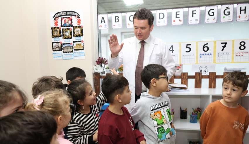 Osmangazi Belediyesi’nin kreşlerinde düzenlenen Meslek Tanıtım Günleri kapsamında Osmangazi Belediye Başkanı Erkan Aydın, kendi mesleği olan eczacılığı minik öğrencilere anlattı. Çocukların merak ettikleri soruları yanıtlayan Başkan Aydın, eczacılığın sağlık alanındaki önemini eğlenceli bir dille aktardı.