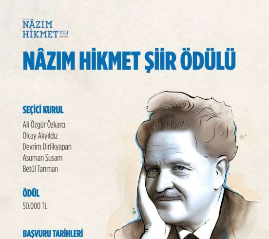Dünya ve Türk edebiyatına sayısız eserler kazandıran şair ve yazar Nâzım Hikmet, Bursa Büyükşehir Belediyesi tarafından hazırlanan çeşitli etkinliklerle anılmaya devam ediliyor. Bursa Büyükşehir Belediyesi tarafından bu yıl ikincisi düzenlenen ‘Nâzım Hikmet Şiir Ödülü’ için başvurular 1 Mart tarihine kadar devam edecek. Ödül almaya hak kazanan eser, Ali Özgür Özkarcı, Olcay Akyıldız, Devrim Dirlikyapan, Asuman Susam ve Betül Tarıman’dan oluşan seçici kurulun yapacağı değerlendirme sonucunda belirlenecek. Belirlenecek eser sahibine ise 50 bin TL ödül verilecek.