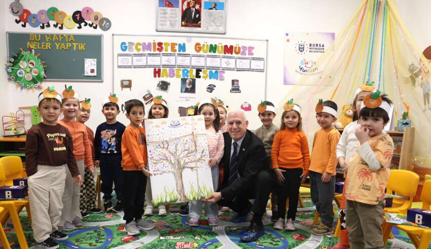 Bir yandan Bursa’yı dirençli ve afetlere hazırlıklı hale getirmek için projeler üreten Bursa Büyükşehir Belediyesi bir yandan da toplumsal farkındalığı artıracak çalışmalarını sürdürüyor. Bu kapsamda Alacahırka ve Üçevler Bursa Yuvam Çocuk Etkinlik Merkezlerini ziyaret eden Bursa Büyükşehir Belediye Başkanı Mustafa Bozbey, öğrencilerle bir araya geldi. Çocuklara afet bilincini artırmaya yönelik hazırlanan boyama kitapları hediye eden Başkan Bozbey, minik öğrencilerle birlikte boyama da yaptı. Öğrencilere süt ve meyve de ikram eden Başkan Bozbey, afetler hakkında bilgiler verdi.