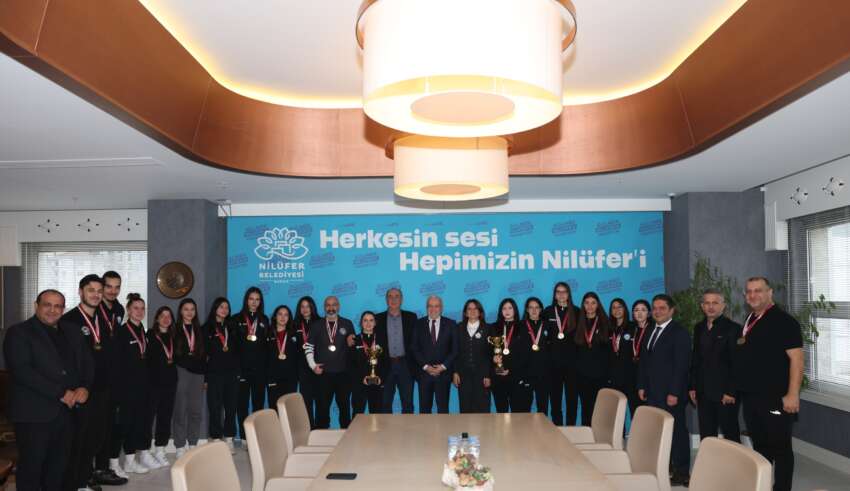 Nilüfer Belediyesi Halk Evi’ndeki başkanlık makamında gerçekleşen ziyarete; Nilüfer Belediyespor Kulübü As Başkanı Mehmet İlker Şener, kulüp yöneticileri, teknik ekip ve şampiyon sporcular katıldı.