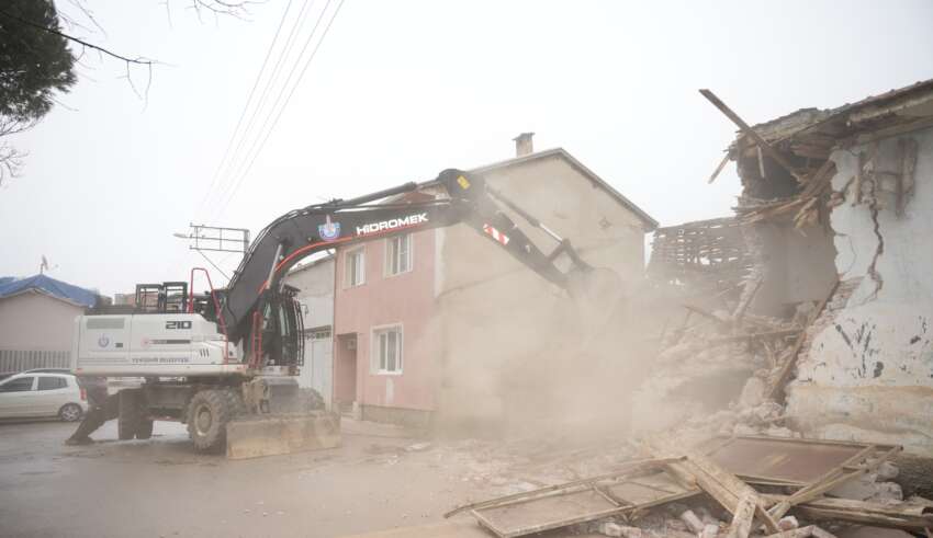 Yenişehir’de Okul Karşısındaki Metruk Bina Yıkıldı