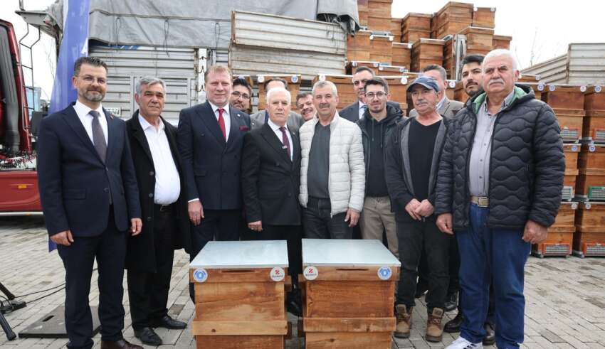 Konuşmaların ardından Başkan Mustafa Bozbey ve belediye yöneticileri tarafından üreticilere kovanları teslim edildi.