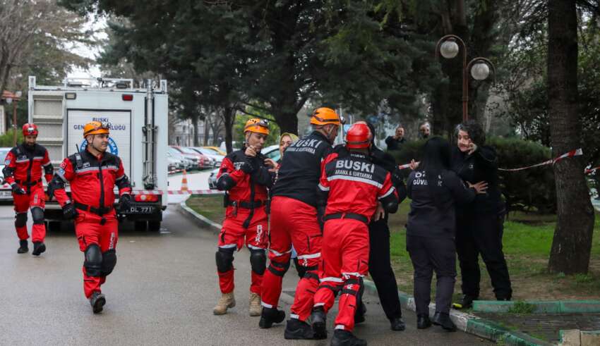 Bursa Büyükşehir Belediyesi BUSKİ Genel Müdürlüğü personeline yönelik, olası afet durumlarında doğru davranış yöntemlerini edindirmek amacıyla, uygulamalı deprem ve yangın tatbikatı düzenlendi.