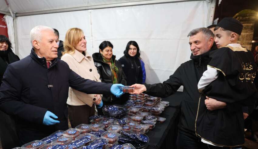 Bursa Büyükşehir Belediye Başkanı Mustafa Bozbey, eşi Seden Bozbey ile birlikte Ramazan ayının başlangıcında Ulu Cami’de kılınan ilk teravih namazının ardından, Ramazan’ın hayırlı ve bereketli olmasını dileyerek vatandaşlara tatlı ikramında bulundu.