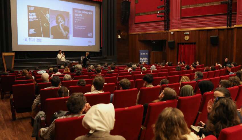 Bursa Büyükşehir Belediyesi tarafından düzenlenen ‘Tayyare Sineması’ programı kapsamında, ünlü yönetmen Tolga Karaçelik’in ‘Saykoterapi’ isimli filmi sanatseverlerle buluştu. Gösterimin ardından Karaçelik, izleyicilerle bir araya gelerek film üzerine kapsamlı bir söyleşi gerçekleştirdi.