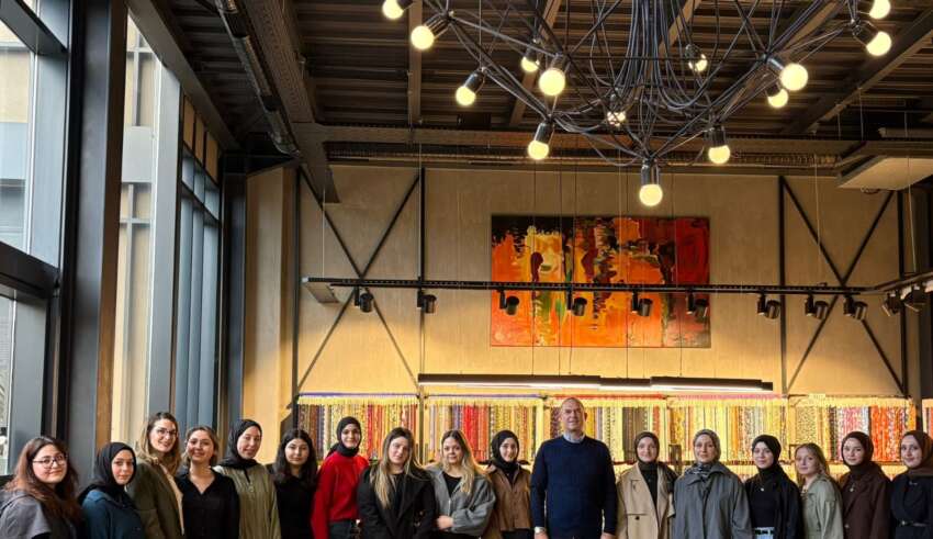 İhsan İpeker’in söyleşisinin ardından firmanın Ar-Ge ve Ür-Ge Bölüm Sorumlusu Özlem Ön eşliğinde tüm üretim departmanları gezildi. Ziyaret boyunca öğrenciler; tekstil ve hazır giyim sektöründe yaygın olarak kullanılan kumaşların ham maddeden nihai ürüne uzanan üretim aşamalarını yerinde gözlemleme fırsatı buldu. Üretim hatları üzerinde yapılan anlatımlarda dokuma süreçleri, baskı ve boya süreçleri, kalite kontrol aşamaları ile kumaşların teknik ve fiziksel özellikleri hakkında kapsamlı bilgiler paylaşıldı. Böylece öğrenciler, teorik olarak öğrendikleri süreçleri sahada birebir deneyimleyerek üretimin her aşamasını bütüncül bir bakış açısıyla değerlendirme imkanı elde etti.