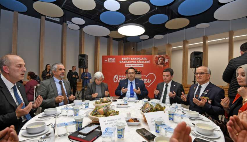 Osmangazi Gösteri Merkezi’nde, Ramazan ayının manevi ikliminde kurulan iftar sofrasına; Osmangazi Belediye Başkanı Erkan Aydın’ın yanı sıra CHP Osmangazi İlçe Başkanı Raşit Gürbüz, Türkiye Muharip Gaziler Derneği Bursa Şube Başkanı Adem Erdem, Türkiye Harp Malulü Gaziler Şehit Dul ve Yetimleri Derneği Bursa Şube Başkanı Haşim Sivri, Bursa Emniyet Teşkilatı Şehit ve Gazi Aileleri Yardımlaşma Derneği Başkanı Nevin Fırtına, belediye başkan yardımcıları, meclis üyeleri, çok sayıda şehit yakını ile gazi katılım gösterdi.