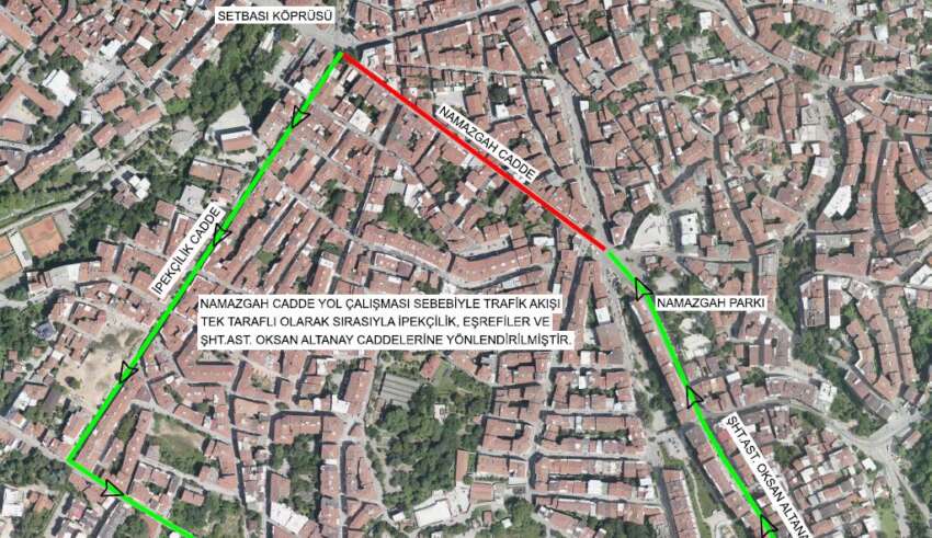 Çalışma sebebiyle 5 Mart Perşembe günü 08:00-15:30 saatleri arasında trafik akışı tek taraflı olarak sırasıyla İpekçilik, Eşrefiler ve Şehit Asteğmen Okşan Altanay Caddelerine yönlendirilecektir.