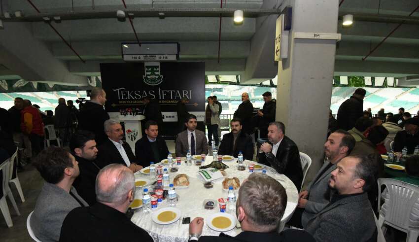 Teksaslı Bursasporlular Derneği’nin Atatürk Spor Kompleksi Matlı Stadyumu’nda düzenlediği geleneksel iftar programı, Bursaspor camiasını aynı sofrada buluşturdu. Osmangazi Belediye Başkanı Erkan Aydın’ın da katıldığı buluşmada birlik, dayanışma ve Süper Lig hedefi vurgusu öne çıktı.
