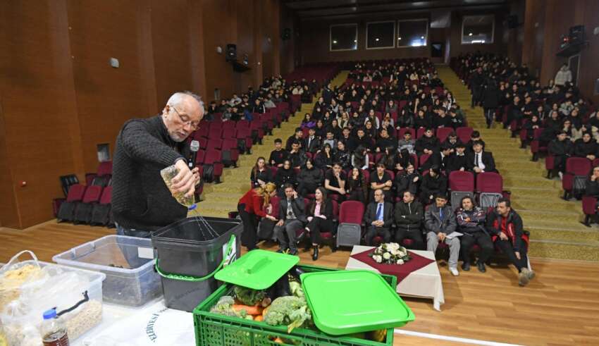 Şehit Erol Olçok Mesleki ve Teknik Anadolu Lisesi’nde düzenlenen seminere; Osmangazi Belediyesi Gazi Tarım Genel Müdürü Arca Atay, Osmangazi Belediyesi İklim Değişikliği ve Sıfır Atık Müdürü Rüveyşa Burça Sütcüoğlu, belediye meclis üyeleri ile çok sayıda öğrenci katılım gösterdi. Programda konuşan Rüveyşa Burça Sütcüoğlu, doğal kaynakların sınırlı olduğuna dikkat çekerek artan nüfusla birlikte atık miktarının da hızla yükseldiğini belirtti. Bunun yanı sıra seminer kapsamında Sütcüoğlu; atıkların kaynağında ayrıştırılmasının çevreye katkıları, gıda israfının önlenmesinin ekonomik ve ekolojik önemi ile sürdürülebilir tüketim alışkanlıklarının günlük yaşama nasıl entegre edilebileceği konularında öğrencilere detaylı bilgiler verdi.