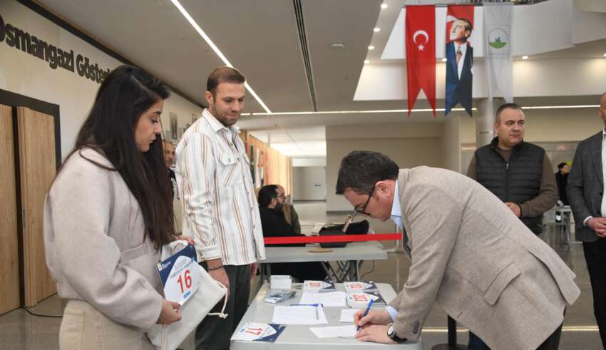 Osmangazi Belediyesi tarafından bu yıl 18’incisi düzenlenecek Uluslararası Osmangazi Tarihi Kent Koşusu öncesinde, katılımcılara göğüs numaraları dağıtıldı. Osmangazi Belediye Başkanı Erkan Aydın da yarışta kullanacağı numarayı teslim aldı.
