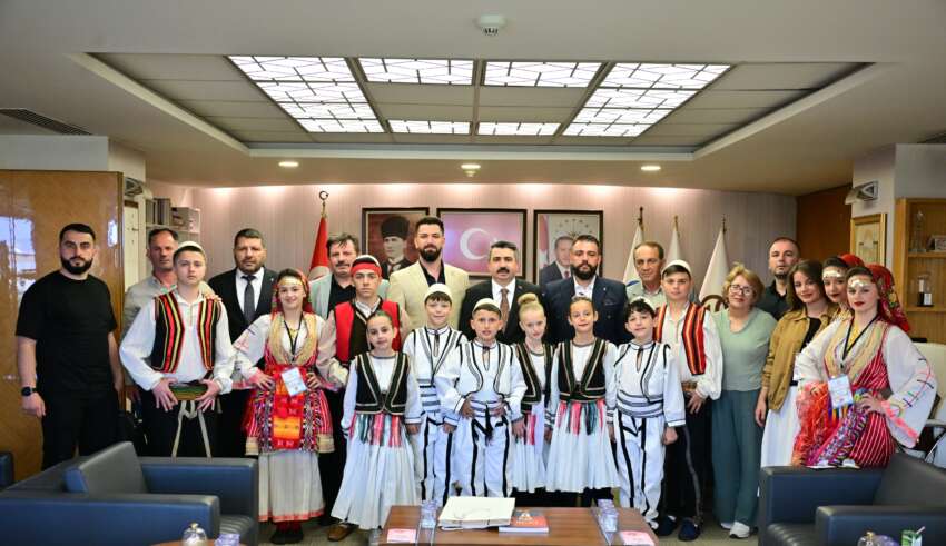23 Nisan Ulusal Egemenlik ve Çocuk Bayramı kutlamaları için Bursa’ya gelen Kuzey Makedonya ve Kosova halk dansları topluluğu üyesi çocuklar, Yıldırım Belediye Başkanı Oktay Yılmaz’ı makamında ziyaret etti. Başkan Oktay Yılmaz, çocuklarla yakından ilgilenerek sohbet etti. Ziyaretten duyduğu memnuniyeti dile getiren Başkan Oktay Yılmaz, 23 Nisan’ın sadece Türkiye için değil tüm dünya çocukları için özel bir gün olduğuna vurgu yaparak, “23 Nisan Ulusal Egemenlik ve Çocuk Bayramı, Gazi Mustafa Kemal Atatürk tarafından sadece Türk çocuklarına değil, tüm dünya çocuklarına armağan edilmiş eşsiz bir bayramdır. Bu yönüyle barışın ve kardeşliğin en güçlü sembollerinden biridir” dedi. Kosova ve Kuzey Makedonya ile Türkiye arasındaki bağların güçlü olduğuna vurgu yapan Yılmaz, “Balkan coğrafyasıyla aramızda sadece coğrafi değil, tarihsel ve kültürel olarak da çok derin bağlar bulunuyor. Kosova ve Kuzey Makedonya’dan gelen evlatlarımızı burada görmek, bu kardeşliğin en güzel göstergesidir. Ortak tarihimiz, kültürümüz ve gönül bağımız bizleri her zaman bir arada tutacaktır” ifadelerini kullandı.