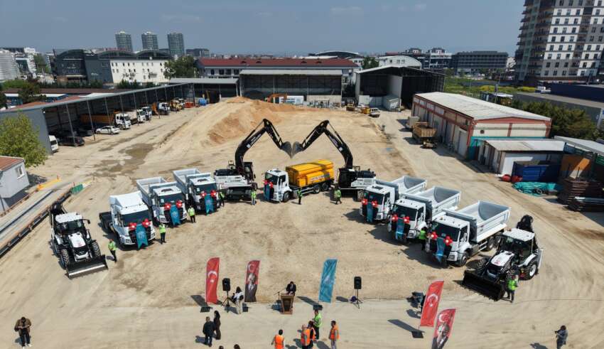Törenin sonunda kamyonlardan birinin direksiyonuna geçen Başkan Şadi Özdemir, hizmete alınan araçların ilk sürüşünü gerçekleştirerek sürece sahadan eşlik etti.