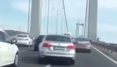15 Temmuz Şehitler Köprüsü’nde makas atarak ilerleyen bir trafik magandası hem kendisinin hem de diğer sürücülerin hayatını …