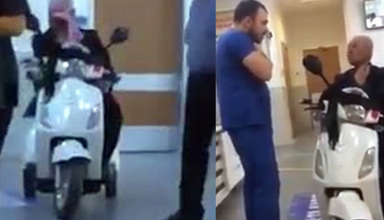 Kilis’te yaşlı bir kişi muayene olmak için motosikletiyle birlikte hastaneye girince görevliler tarafından dışarı çıkarıldı.…