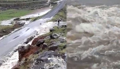 Elazığ’da dağdan inen yağmur suları sele dönüştü, eski Bingöl yolunun bir kısmını kapladı. Meteorolojinin dünden itiba…