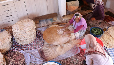Denizli’nin Tavas ilçesinde ramazan öncesinde bir araya gelen kadınlar, imece usulü yufka ekmeği yapıyor. Denizli̵…